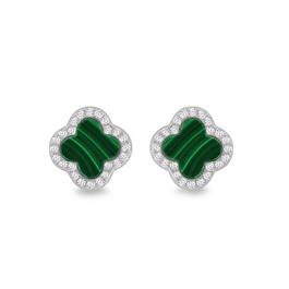9ct Gold Synthetic Malachite CZ Clover Necklace