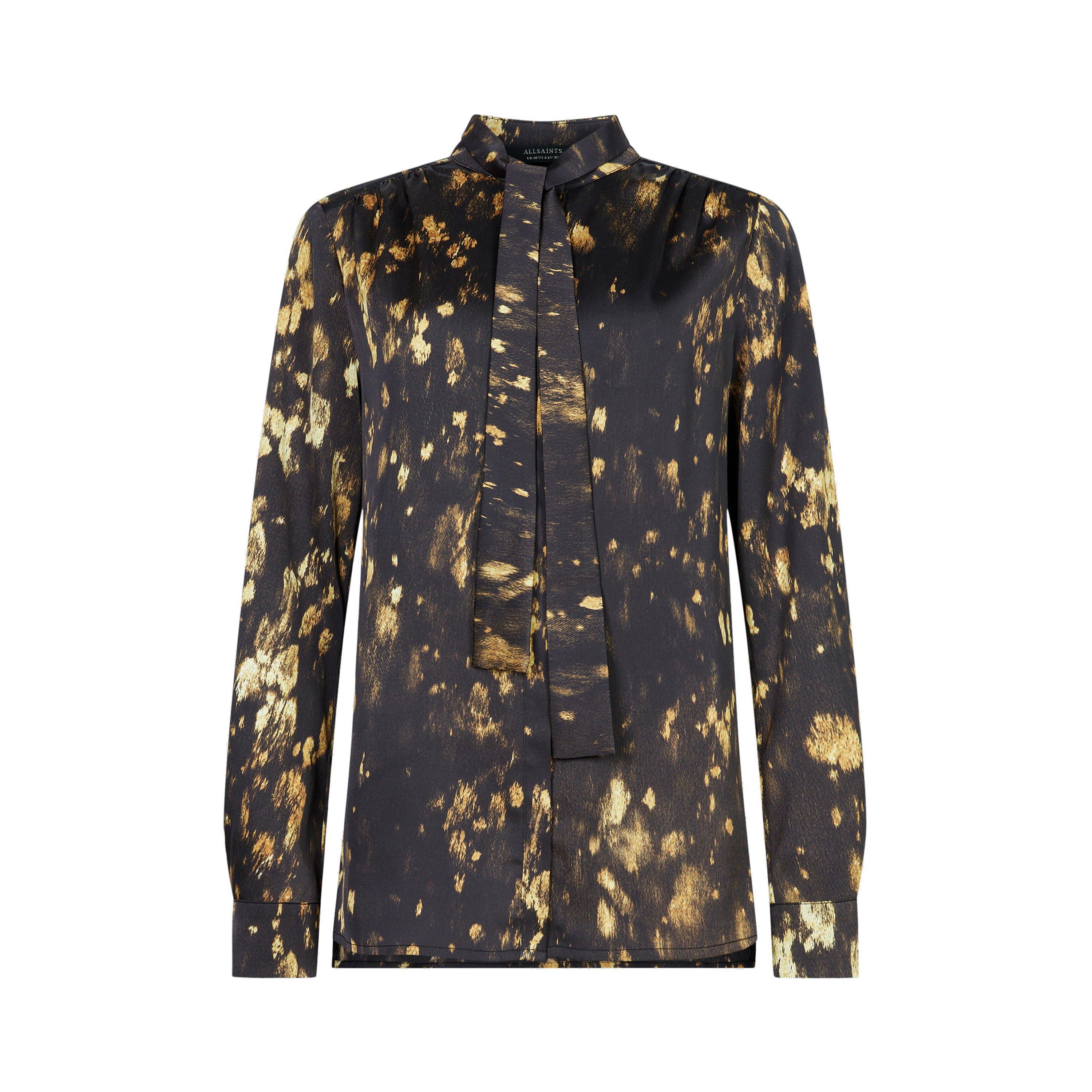 Women's Toni Silk Blend Gold Print Long-Sleeve Blouse