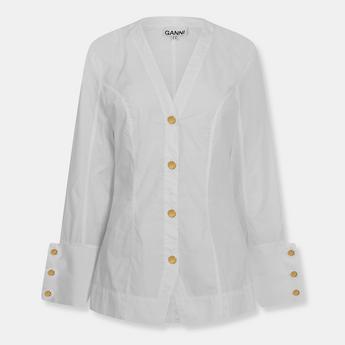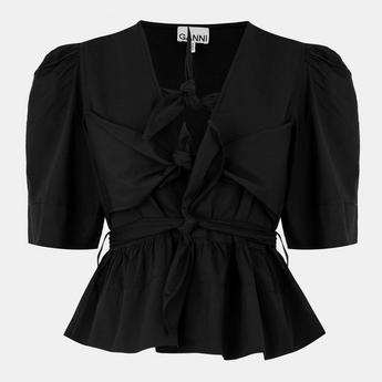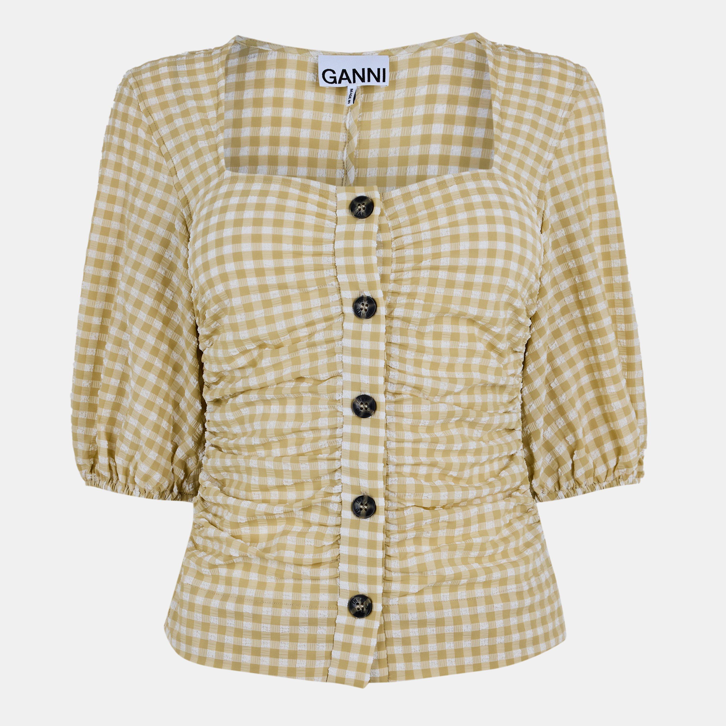 Discover our elegant collection of GANNI blouses and shirts, perfect for updating your workwear or elevating your evening look. For a touch of timeless charm, opt for ladies' GANNI blouses with wide collars, evoking a vintage feel, ideal for pairing with jeans or skirts to create a sophisticated summer ensemble. Embrace femininity with ruched or pleated blouses, accented with charming ribbon detailing for a flattering silhouette. If you're seeking a more contemporary touch, GANNI shirts for ladies offer a range of stylish cuts, from striped patterns in multicoloured hues to bold green designs. For those looking to stand out, explore women's GANNI blouses & shirts with eye-catching patterns that make a statement in any wardrobe.