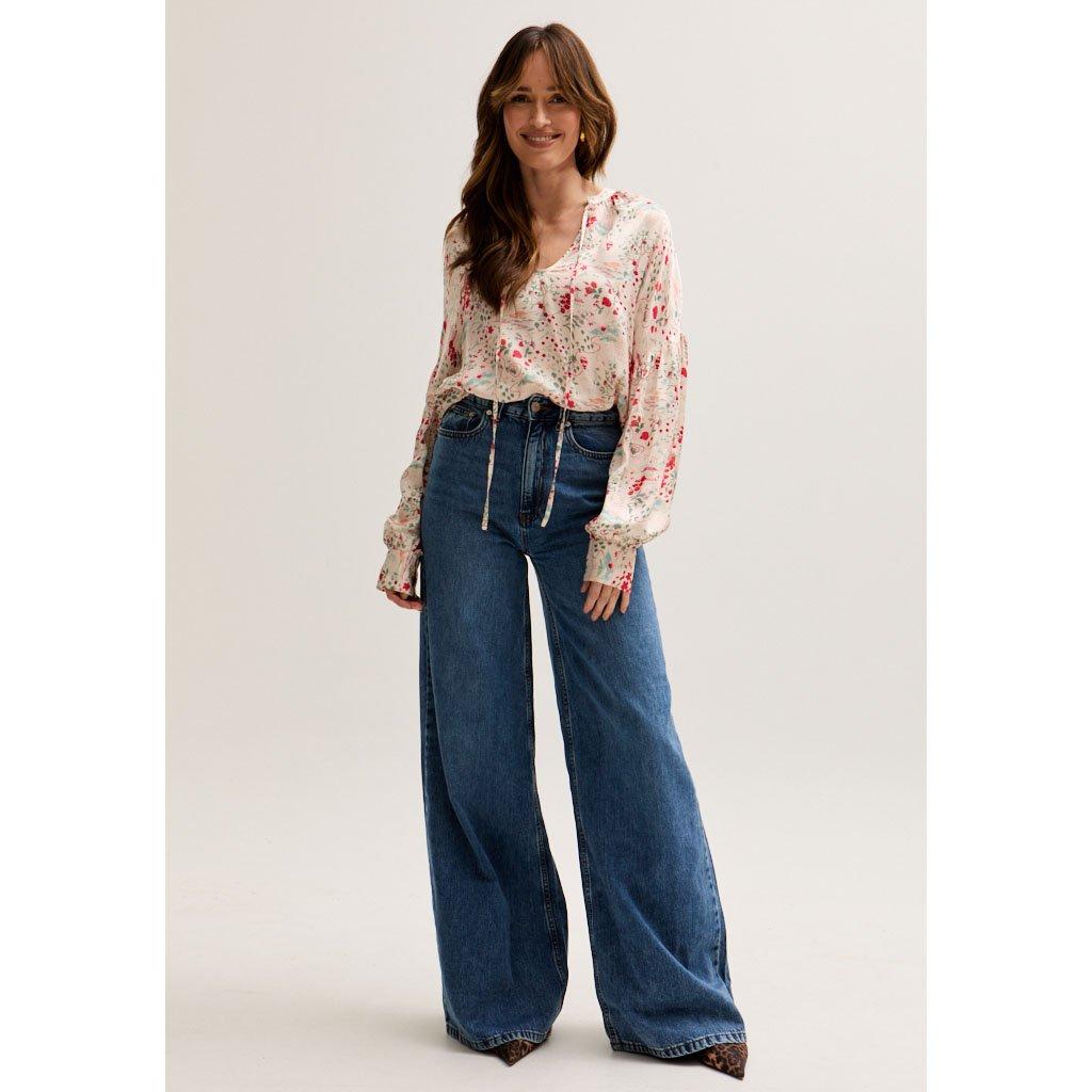 Rosetti Billowy Sleeves Wishing Well Print Blouse In Multi