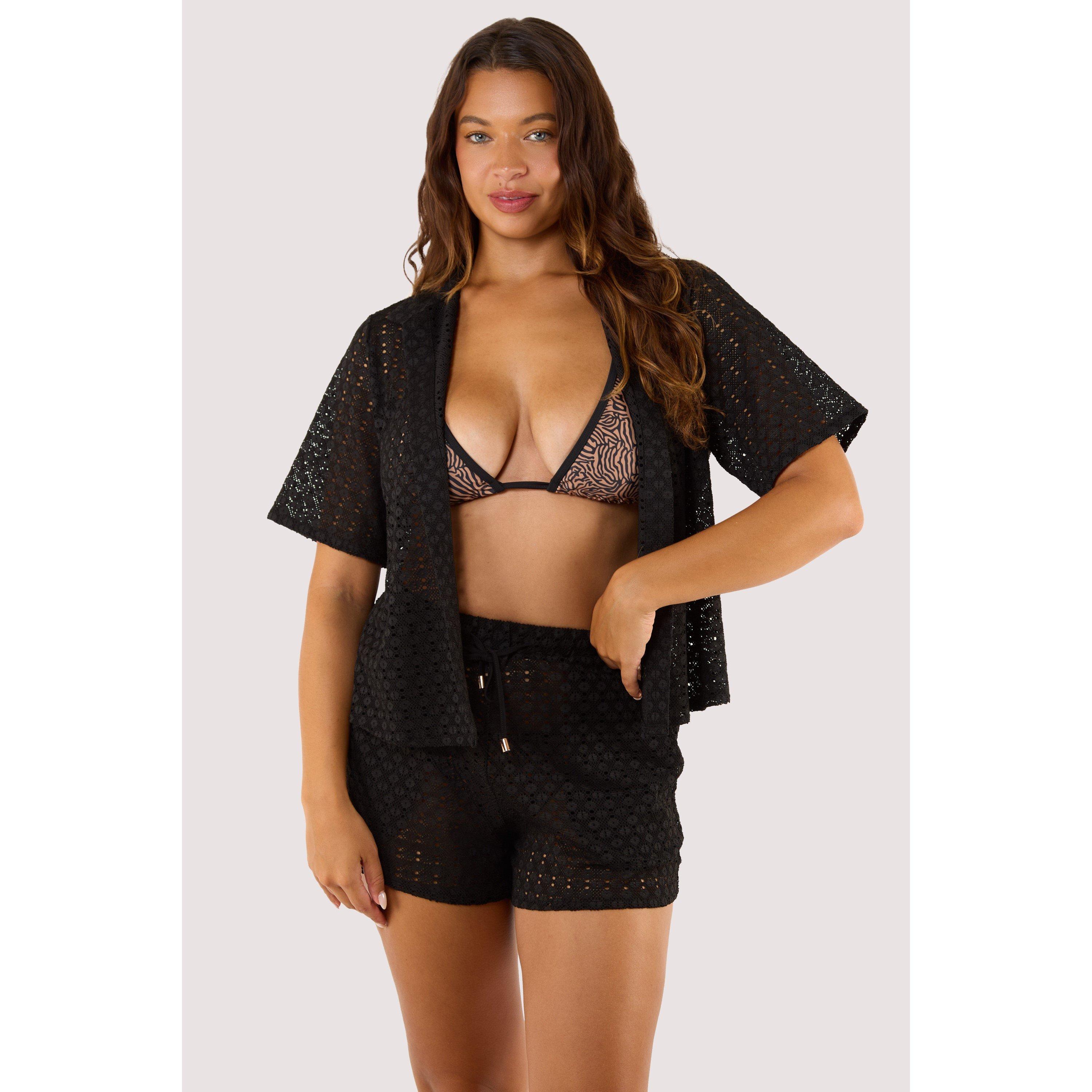 Onyx Black Crochet Beach Shirt