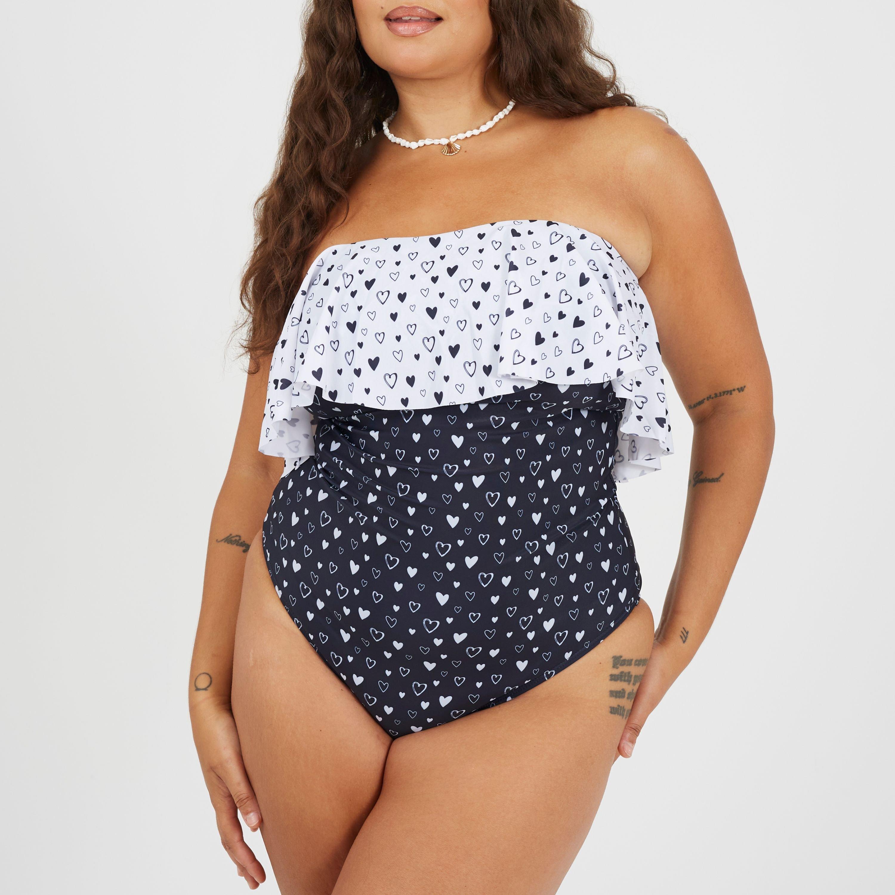 Womens Plus Size One Piece Bardot Swimsuit with Frill Detail
