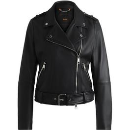 Bring bold sophistication to your wardrobe with our collection of women's leather jackets, designed to add edge and elegance to any outfit. Whether you're looking for timeless appeal or contemporary charm, these versatile layers are a must-have. Elevate your ensemble with ladies' leather coats featuring intricate embellishments, perfect for adding texture and flair to your look. For a touch of versatility, opt for a faux leather jacket in classic sleek black colourways, ideal for pairing with everything from casual jeans to tailored dresses. Whether you're heading out for brunch or an evening soiree, these women's biker jackets exude confidence and timeless style. This season, explore women's leather jackets from Off-White, Boss, and Belstaff, crafted for those who value effortless style and everyday edge.