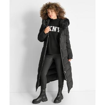 Women's Quilted Fur Hood Tailored Fit Medium Puffer Jacket