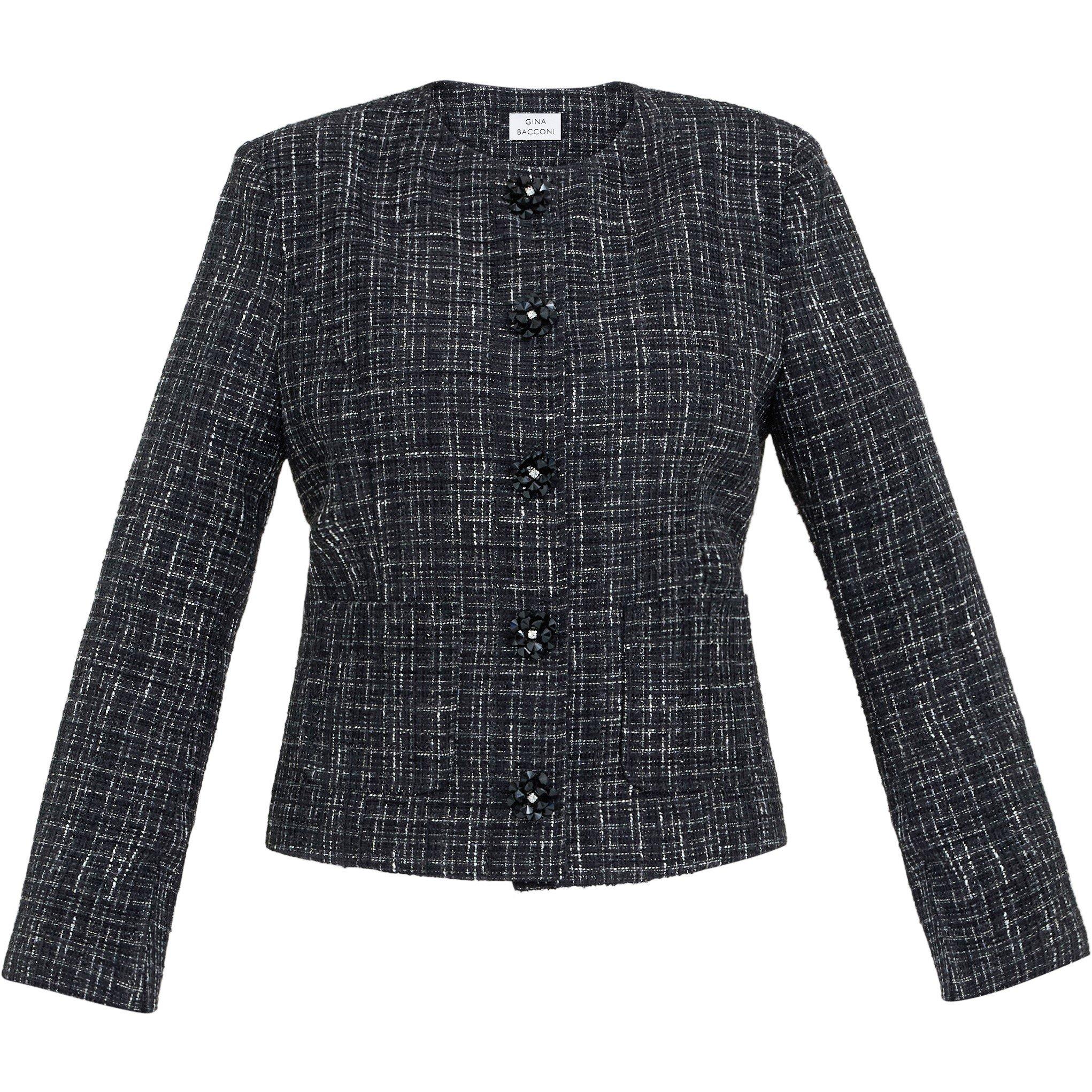 Giving your work outfit a professional finish is easy with one of our versatile women's black tailored jackets. We have block-colour blazers with tapered waistlines and neat collars that help you look sharp at that important board meeting. Wear yours with tapered trousers, a silk camisole and heels to complete your office attire. For a contemporary update, choose a collarless design in a cropped length or with eye-catching waterfall panels. Your early morning commute will fly by in one of our warm ladies' black tailored jackets crafted from a thick fabric.