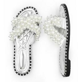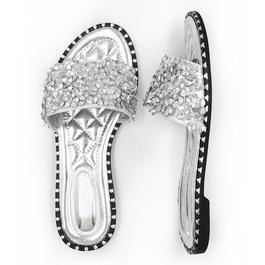 Iowa Crystal Cross Foot Strap Mid Heels In Silver