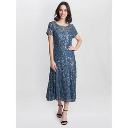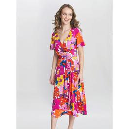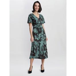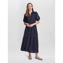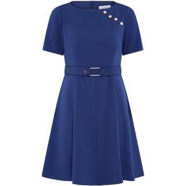 Ella Polka Dot Pleated Midi Dress in Stone or Navy