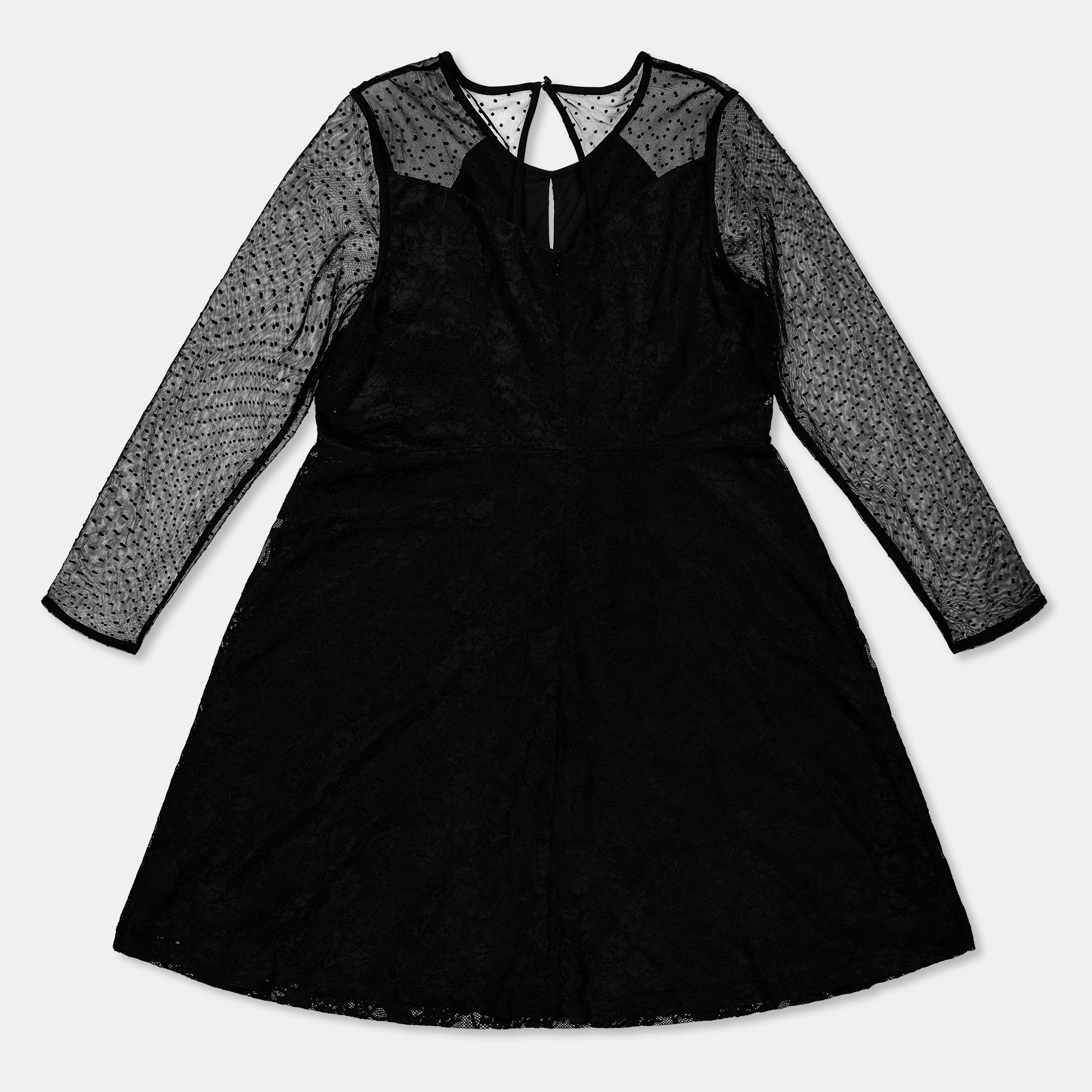 Black Lace Mesh Skater Dress