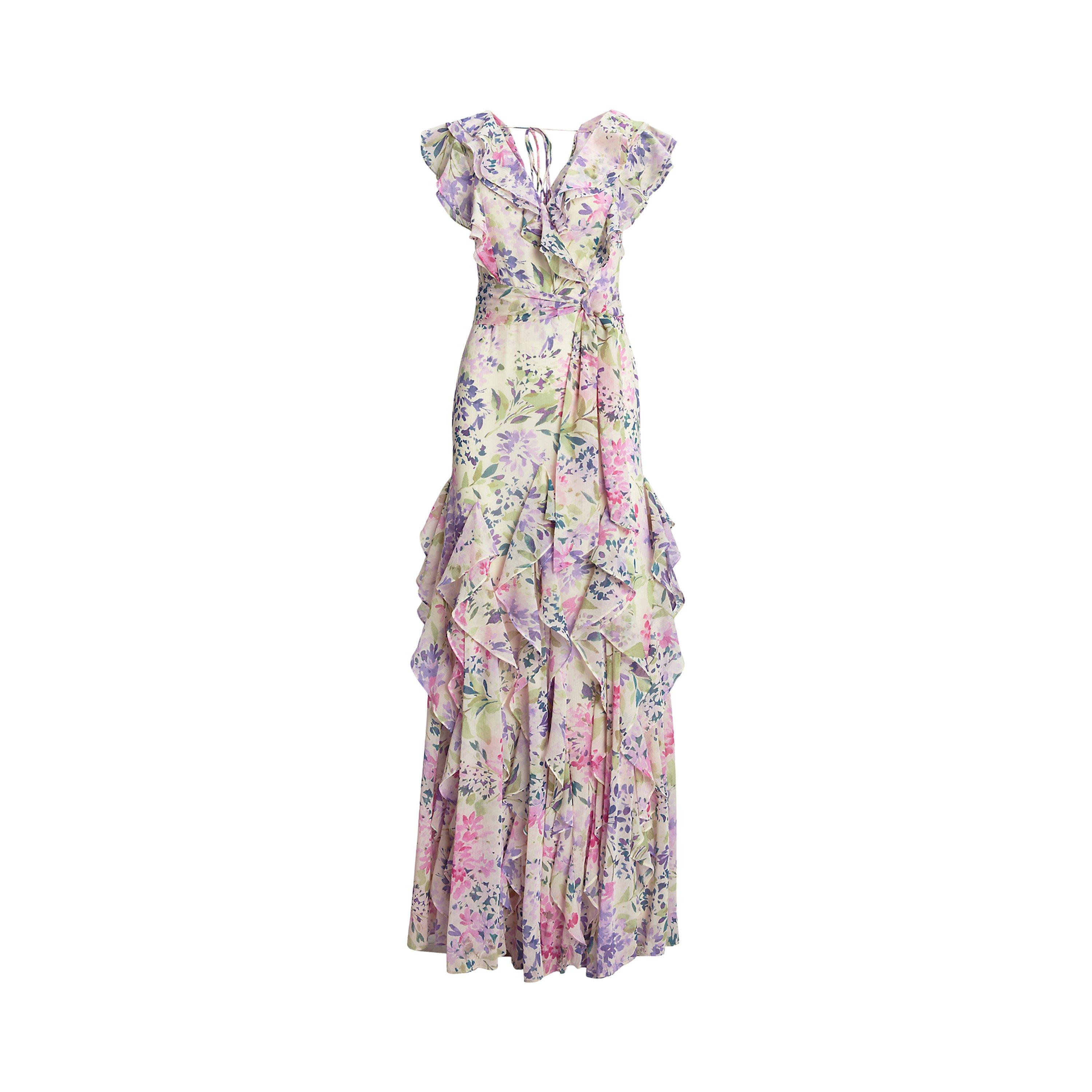Floral Ruffle-Trim Georgette Gown