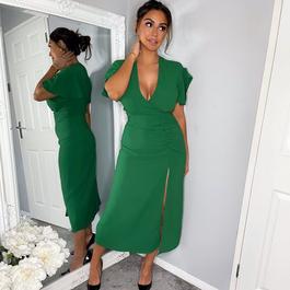 Neck Ruched Bodycon Midi Dress