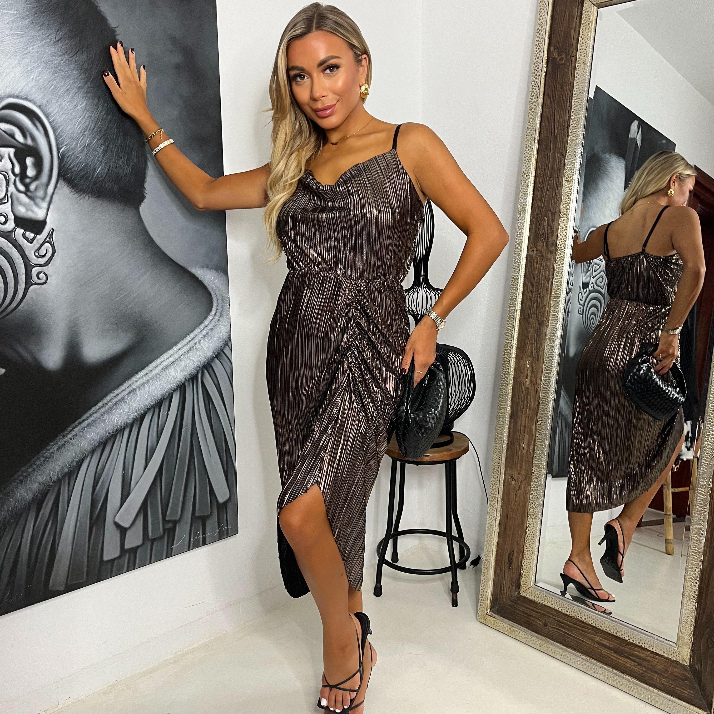 Got plans? Make a lasting impression with the chic and versatile cowl neck dress. Whether you're stepping out for a casual brunch or an elegant evening affair, cowl neck dresses elevate your look with their soft, draped neckline and effortless sophistication. From strappy designs to long-sleeved options, the satin cowl dress transitions seamlessly through every season. Add a playful edge with bold prints,think leopard or geometric patterns,or keep it simple with solid hues. Style with strappy heels and statement jewellery to complete the look. During cooler months, opt for a knitted piece paired with knee-high boots for a cosy yet refined style. Whether you're going for understated charm or bold impact, a cowl dress promises a silhouette that's as flattering as it is unforgettable.