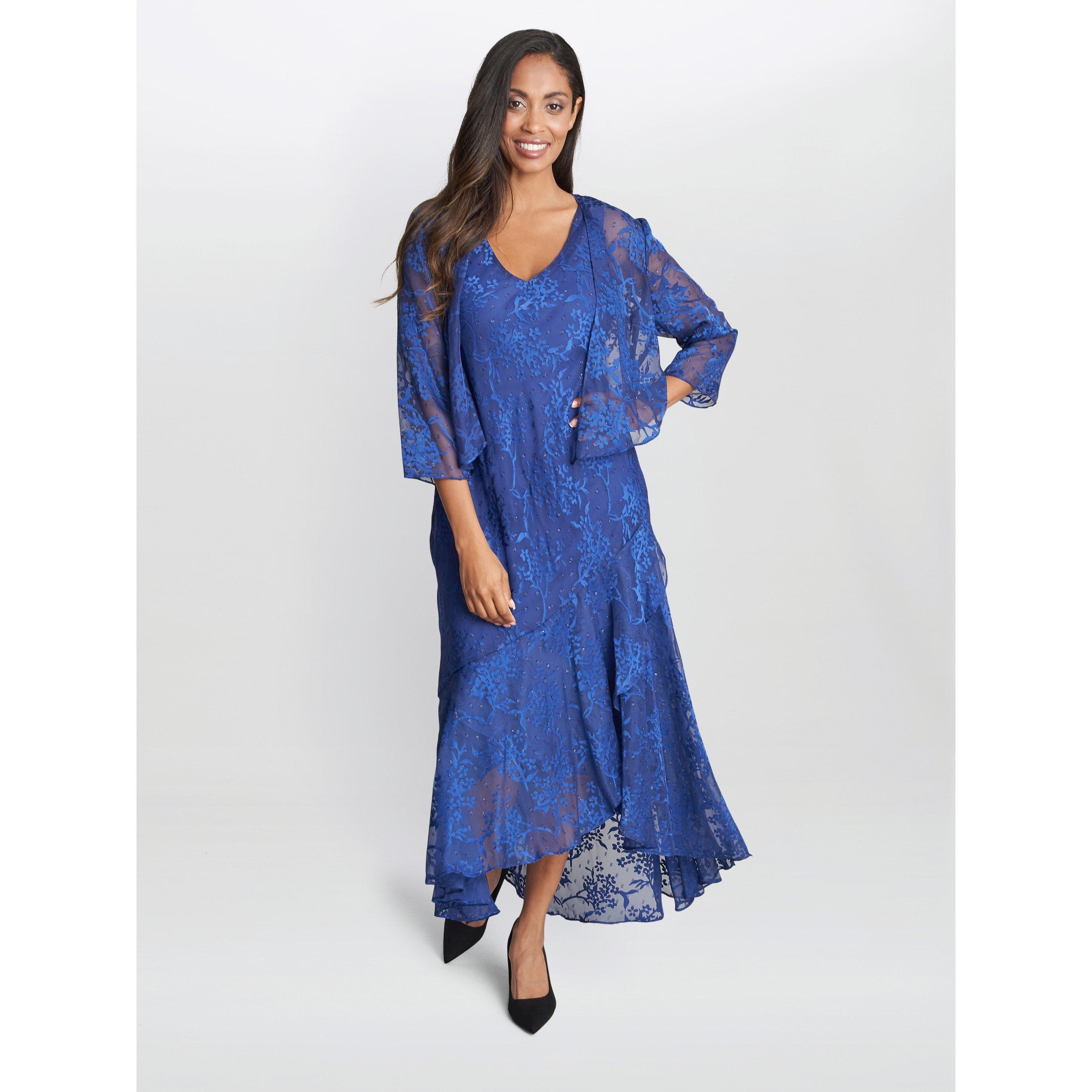 Blue Ditsy Print Bardot Dipped Hem Dress