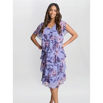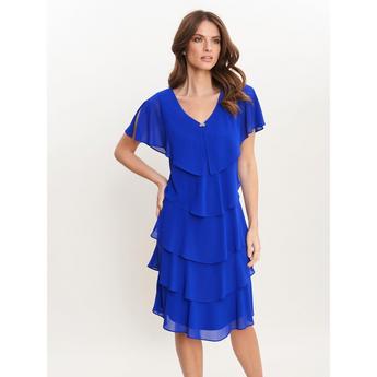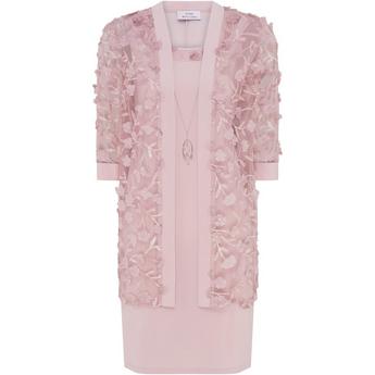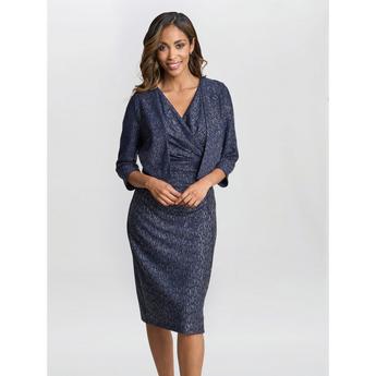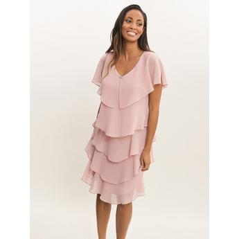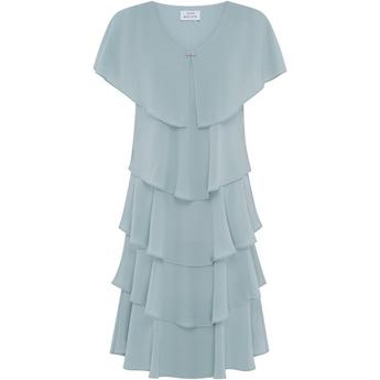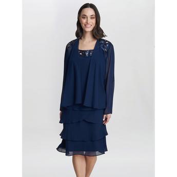Joseline Short Chiffon Jacket Dress With Beaded Neckline