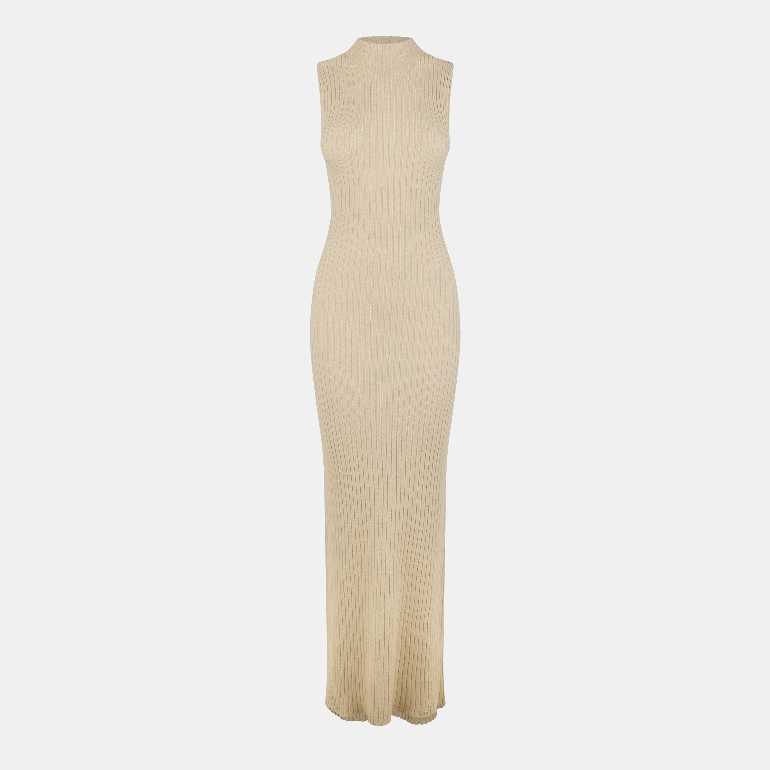 High Neck Ribbed Maxi Dress