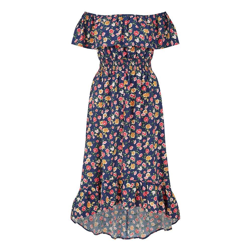 Women's Navy Bardot Floral High Low Maxi Dress