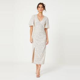 Maya Buttercream Floral Embellished V Neck Midaxi Dress with Split