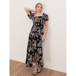 Lovedrobe Teal Floral Burnout Square Neck Shirred Midaxi Dress