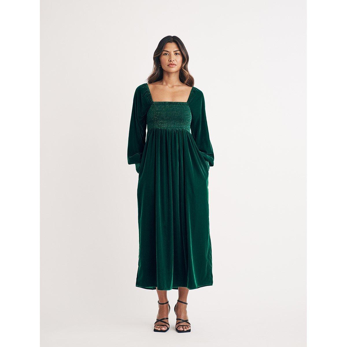 Velvet Shirred Kylie Midi Dress