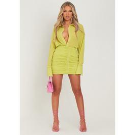 Womens V-neck Long Puff Sleeve Mini Dress