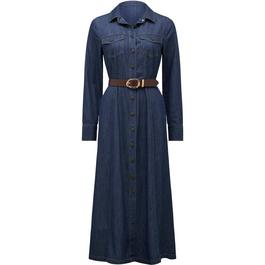 3/4 Sleeves Gathered Waist Shirt Midi Dress