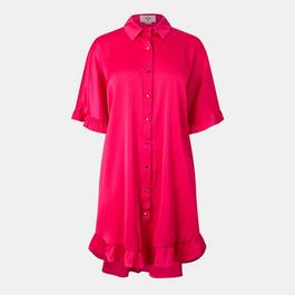 Long Sleeve Frill Hem Shirt Mini Dress