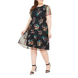 Black Embroidered Floral Skater Dress