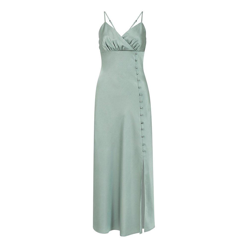 Women's Green Floral Bardot Dipped Hem Slip Dress