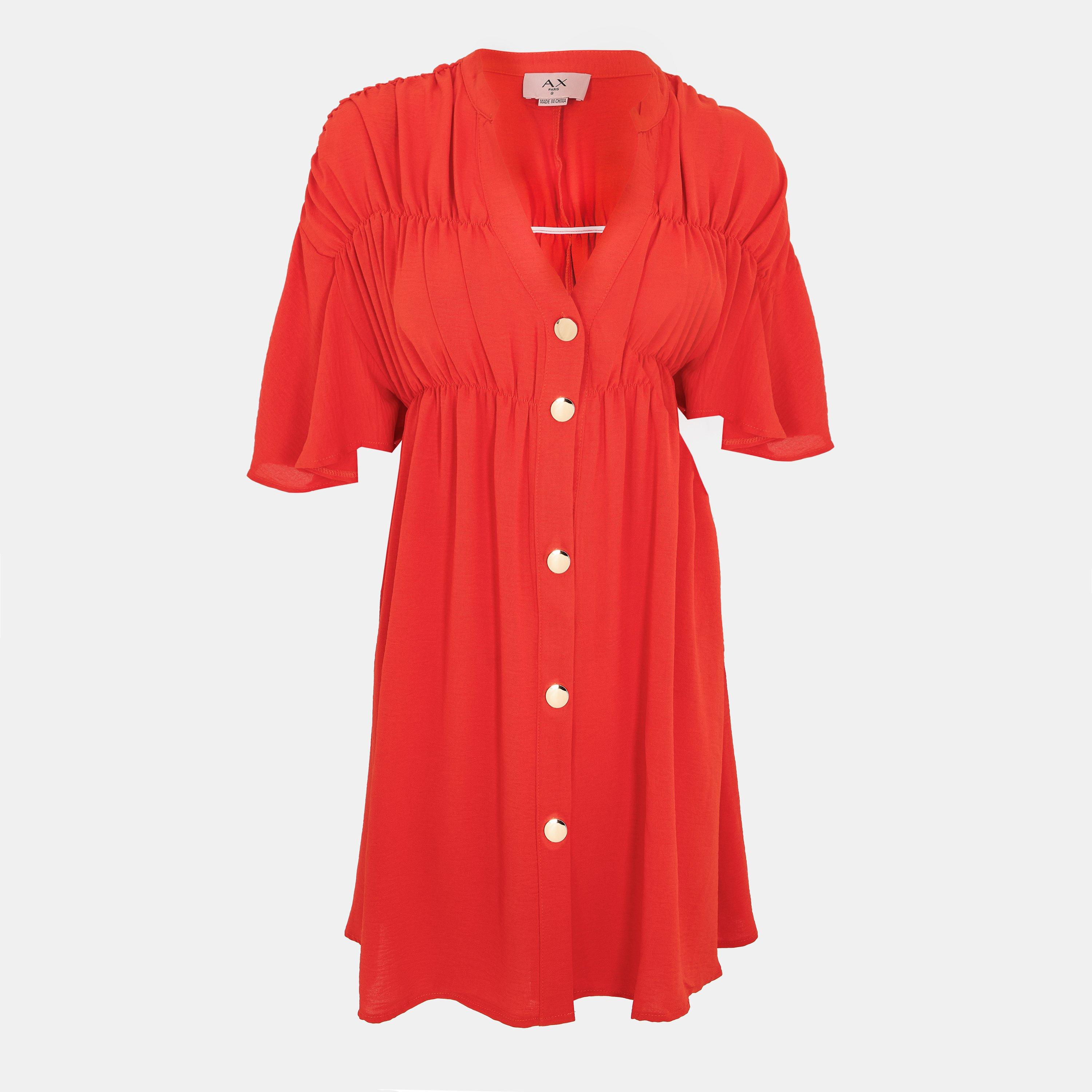 Burnt Orange Button Up Ruched Detail Smock Dress