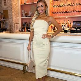 Stretch Cotton Strapless Belted Bodycon Midi Dress