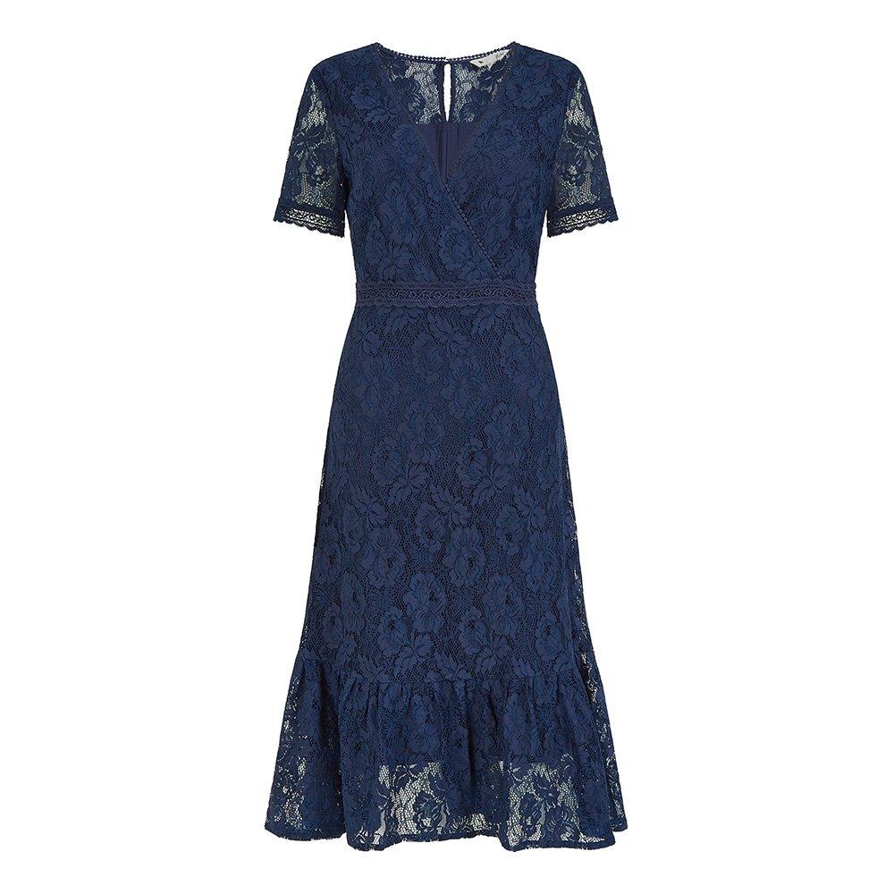 Women's Green Lace Skater Ruffle Hem Midi Tea Dress