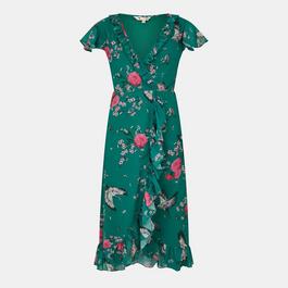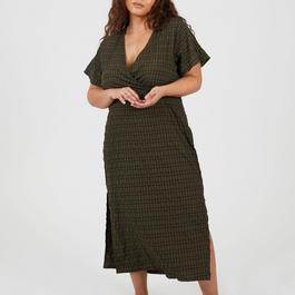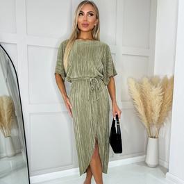 Bronze Plisse Buckle Detail Wrap Midi Dress