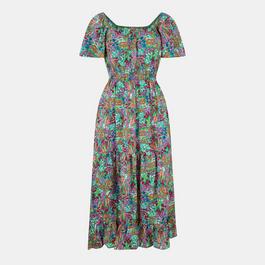 Plus Size Tiered Floral Midi Dress with Adjustable Sleeves