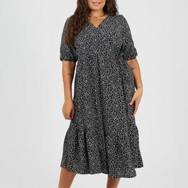 Plus Size Short Sleeve Animal Print Midi Dress with Tiered Hem
