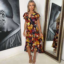 BS Plus Size Wrap Midi Dress with Floral Print