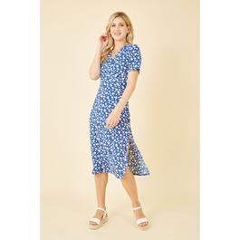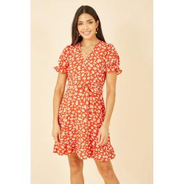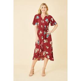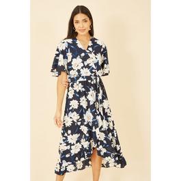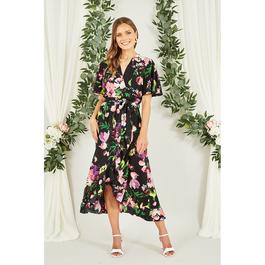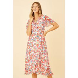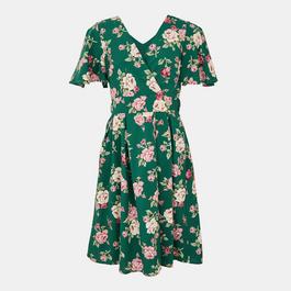 Green Floral Dip Hem Wrap Midi Dress