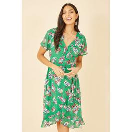 Green Floral Wrap Midi Dress