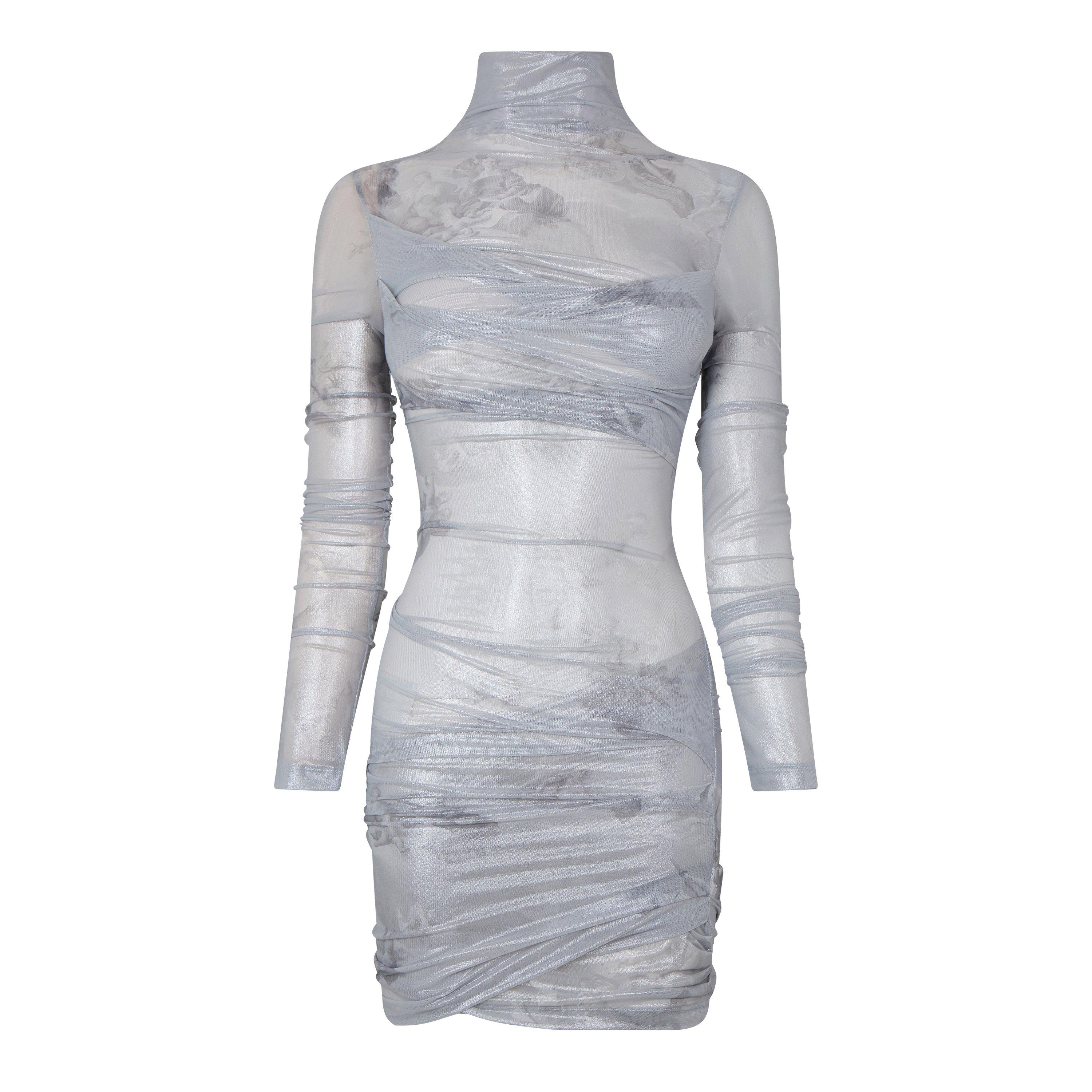 Women's Sky Shiny Tulle Twist Long-Sleeve Dress