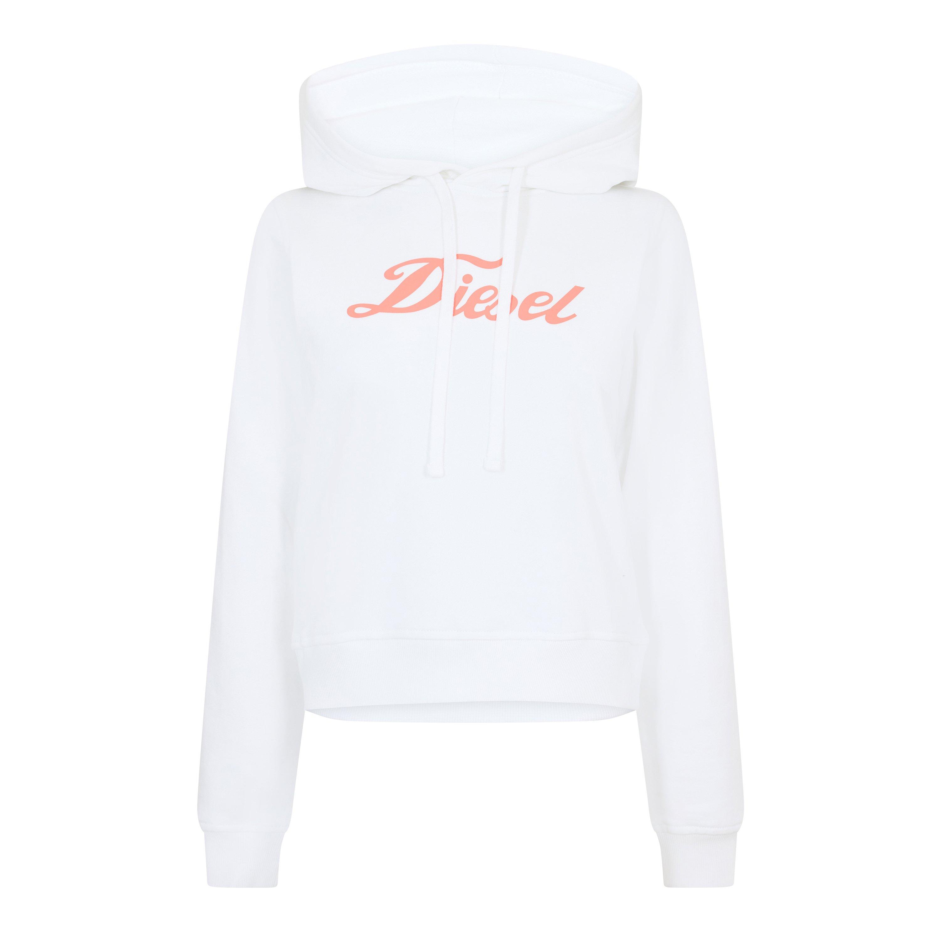 Upgrade your loungewear attire with a collection of Diesel hoodies and sweatshirts for women in an array of colours and styles. Stock up on the basics with a classic zip up hoodie in black and grey for a relaxed look or choose a pullover hoodie in pink to add a pop of colour to your look. Choose from a selection of crew neck sweatshirts embossed with the brand's signature logo in black and white or opt for vibrant hues of pink and purple.