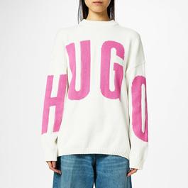 Embrace the season in style with a womens Hugo Boss jumper or cardigan. Dive into a realm of chic warmth and contemporary flair and shop a collection of women's Hugo Boss knitwear that will amp up your winter wardrobe. Whether you seek warmth for winter or a stylish layer for transitional seasons, a black Hugo Boss cardigan is perfect for any time of the year. Style a crew neck or roll neck Hugo Boss ladies jumper on office days and opt for a cute button-up sweater to bundle up in at home. This collection combines versatility and modern aesthetics, ensuring you have the most stylish knitwear and stay effortlessly on-trend throughout the season with an array of pink, navy, and beige colourways. This season, shop our selection of ladies' Hugo Boss jumpers and cardigans.