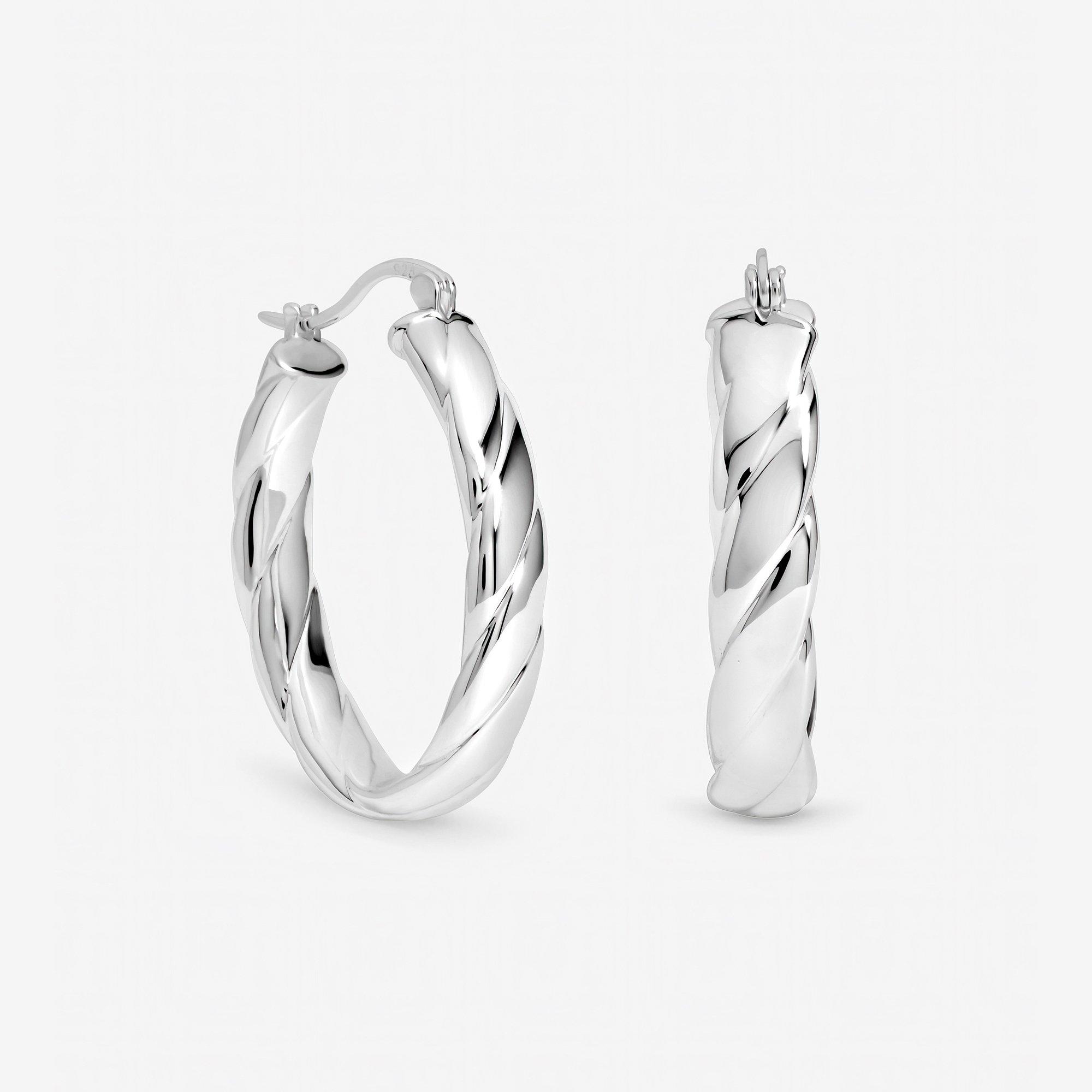 Sterling Silver Plated Two Tone Twist Hoops
