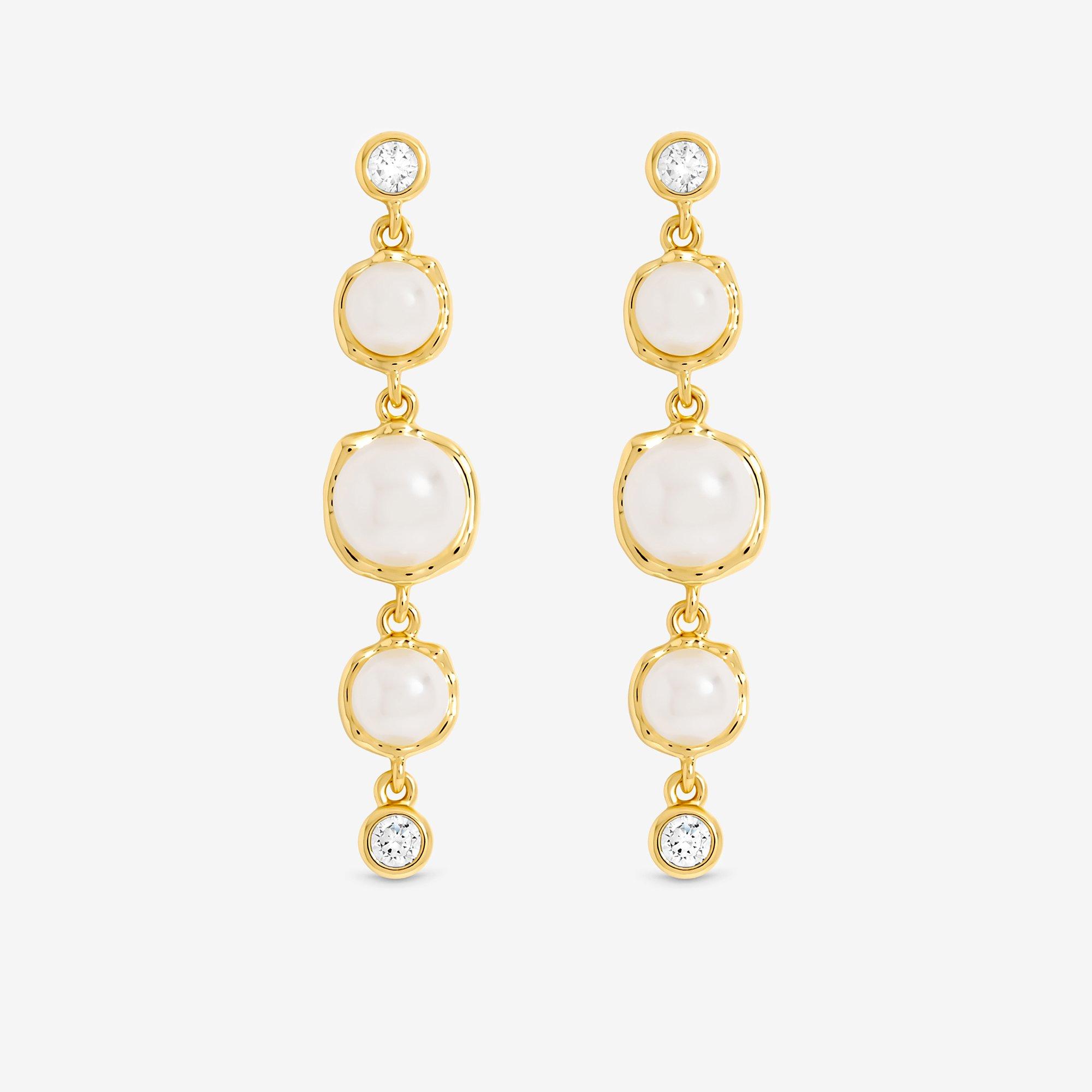 14K Gold Plated Graduated Pearl Drop Earrings