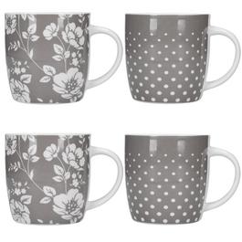 Set of 4 Exotic Floral / Chevron Mugs