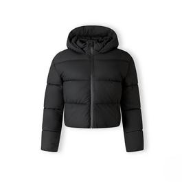 Women long quilted winter jacket with contrast zip and drawstring hood black