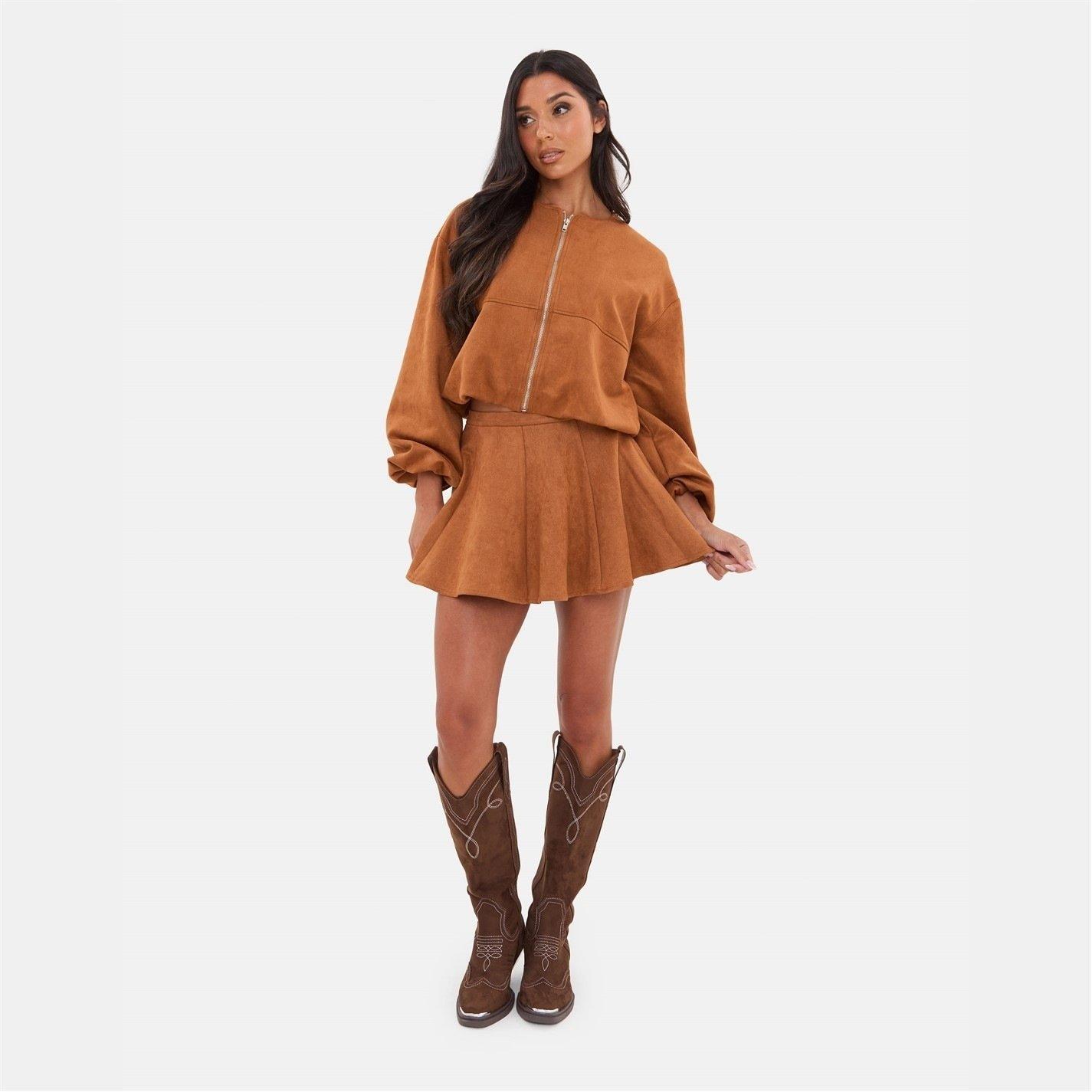 Faux Suede Skater Skirt