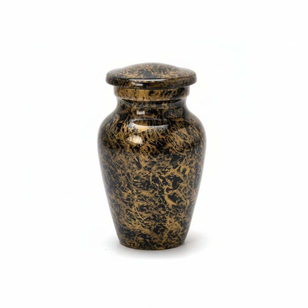 Small Cremation Keepsake Vibrant Swirling Metallic Gold Black Blue Glossy Urn