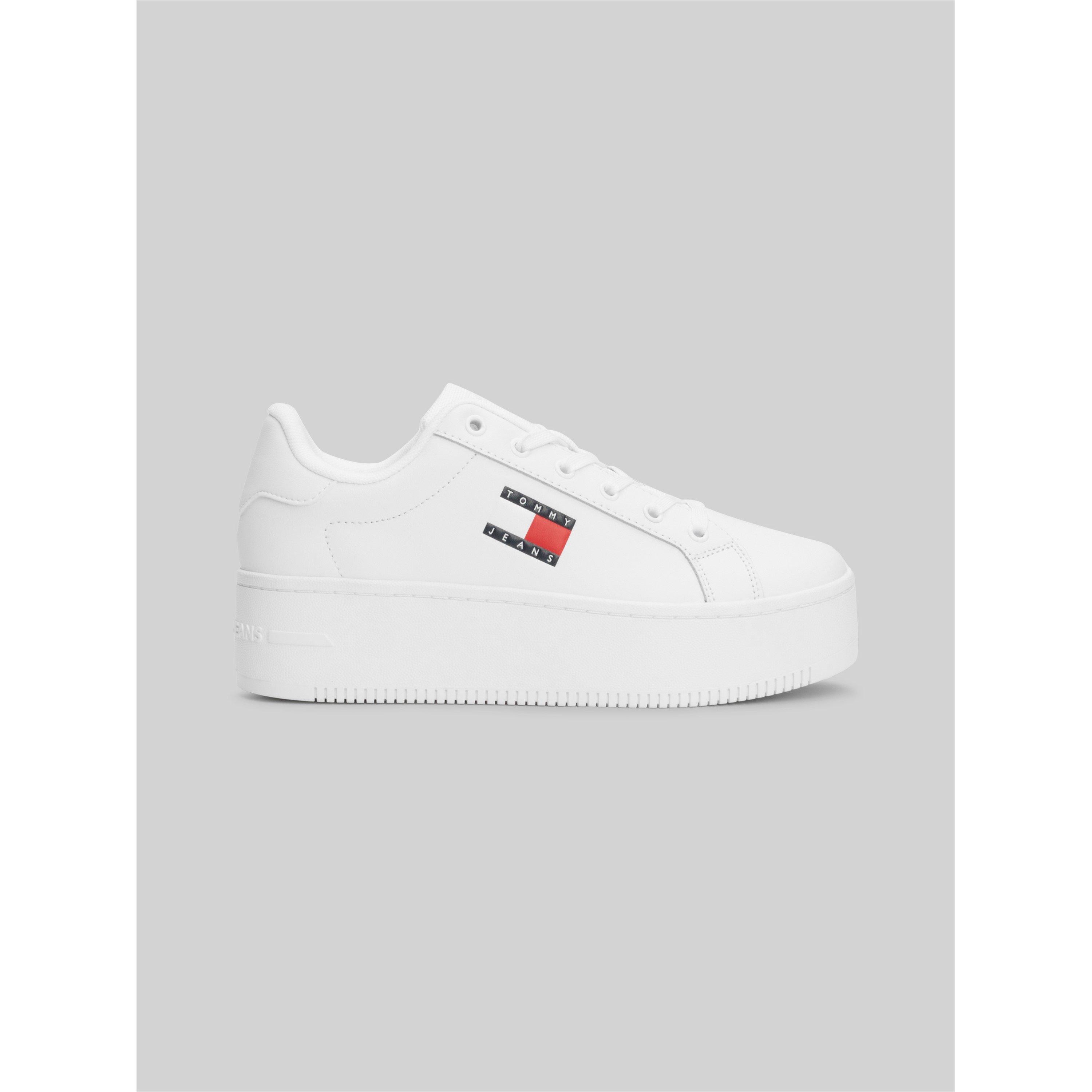 Dress with a relaxed and contemporary look this season with the women's Tommy Hilfiger trainers collection. Find fashion-forward chunky trainers with statement designs, or go with a pair of runners for a sporty look. From slip-on styles to lace-up sneakers, take your pick from a selection of comfortable shoes you can pair with jeans or dresses on warmer days in black, white, blue, red and more. Make your outfit stand out with a pair of low-top sneakers that feature bold signature Tommy Hilfiger flag prints, iconic colourways and sleek silhouettes.