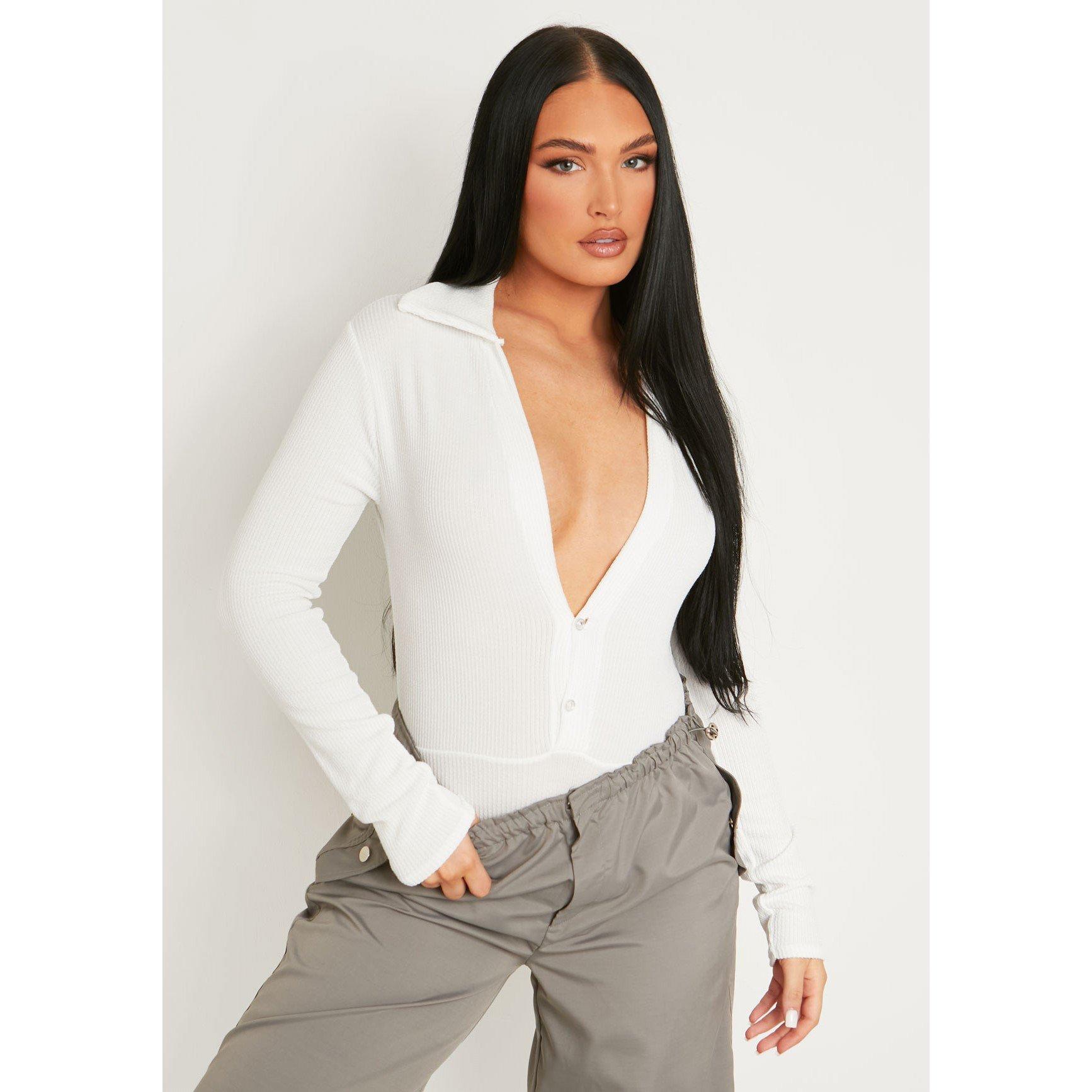 Knitted Plunge Button Detail Bodysuit