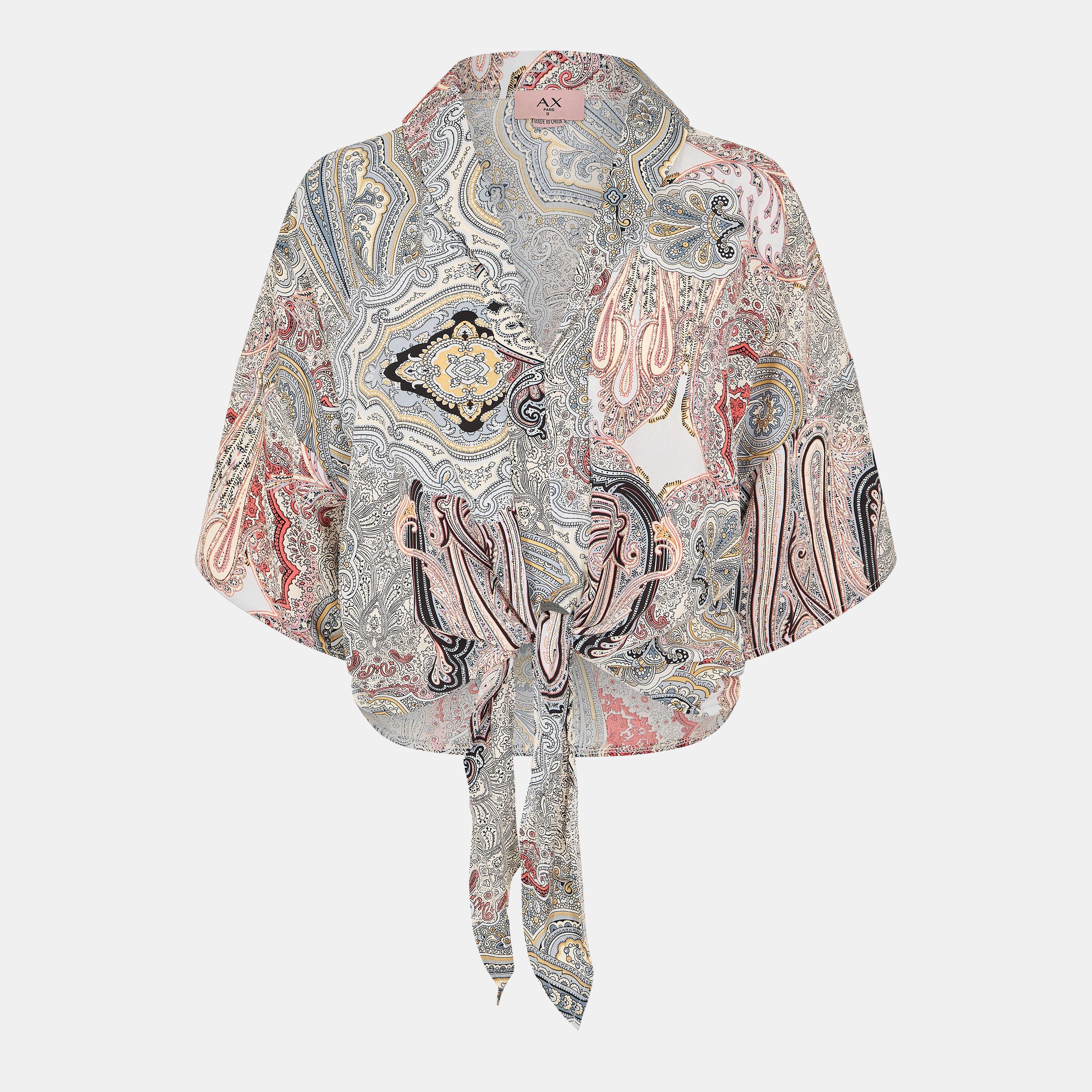 Multi Paisley Printed Tie Waist Crop Shirt