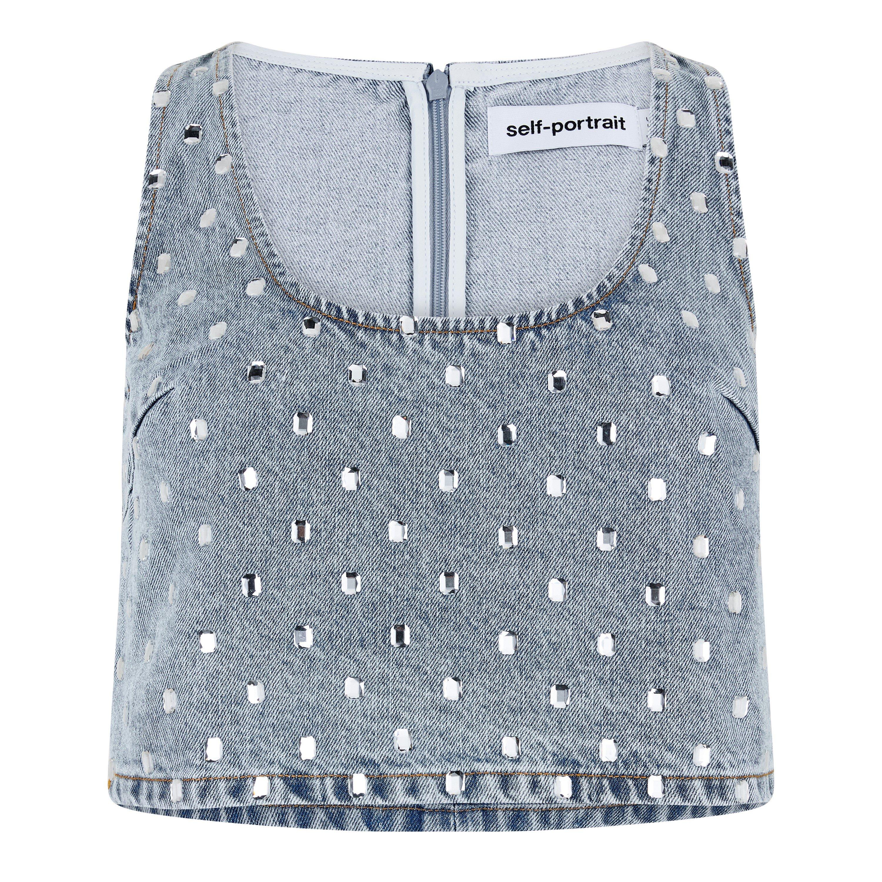 Women's Rhinestone Denim Strappy Crop Top
