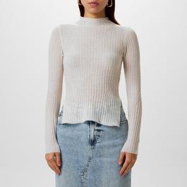 Logo Turtleneck Rib Knitted Full Zip Cardigan